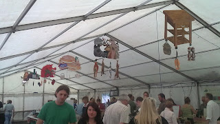 Well the Hay-on-Wye food and drink festival lived up to expectations, a lovely town, lovely weather and lovely people... what more can you ask? Didn't get the chance to find out who the artists were but these mobiles looked really great, and they've got me thinking of a 'heath robinson' version of making scotch eggs for the eggshed shopMeanwhile we were stretching things again with Penny returning to Moseley farmers' market, think it was September 08 last time we let her loose in the city streets, as usual a well supported event although on the way back she got stuck for a while in what can only be described as a cloud burst... torrential rain, thunder and lightening... really localised as wall to wall sunshine with me and Lotto who covered Cirencester farmers' market ( no celebrity excitement reported this week, sorry)